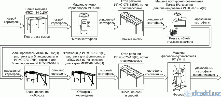 Комплекты оборудования для организации цехов серии КМЦ 0401 (Выпускаемая продукция: хрустящий картофель, картофель фри) | ||||