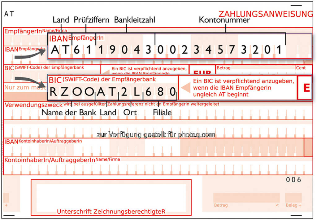 Из опыта следует, что банковская связь в международном формате необходима для всех платежей, а не только для платежей за товары и услуги, например, при оплате различных комиссионных, штрафов, в […]платежах из-за/за границу, носящих […] социальный характер, и т. п. Поэтому клиентам банков рекомендуется указывать на корпоративных документах (счетах-фактурах, почтовой бумаге), других документах (контрактах и т.п.) и на информационных материалах кроме номера банковского счета в […]чешском формате, также BIC и IBAN. ceb.cz |