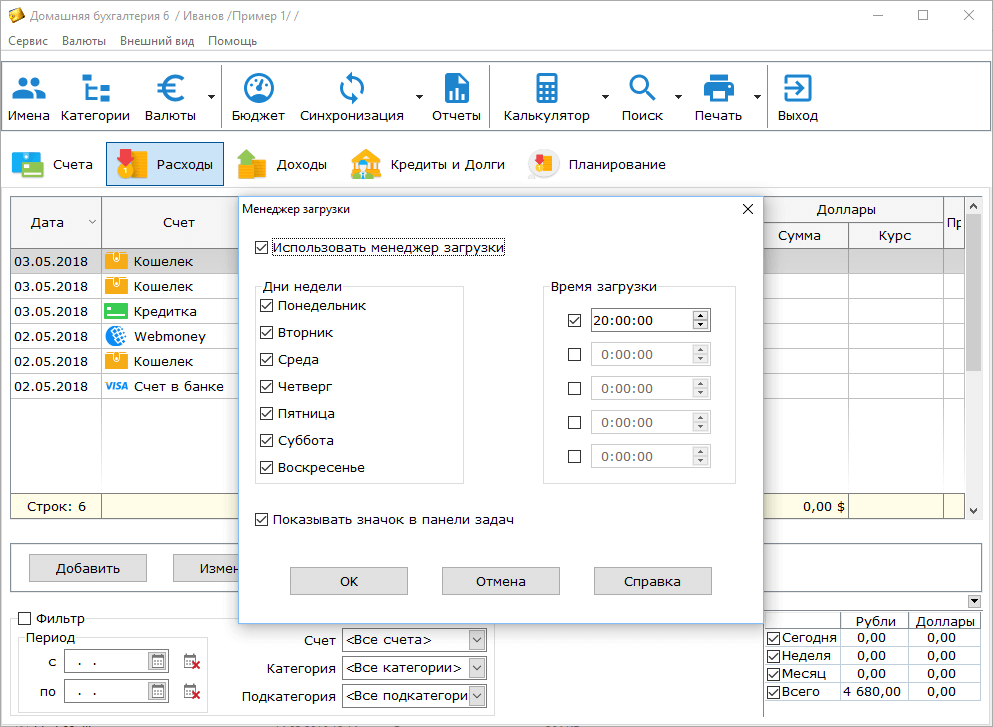 Money Manager – приложение для домашней бухгалтерии на ПК и смартфоне. Позволяет вести журнал расходов и доходов, планировать бюджет по разным категориям трат, смотреть расходы по категориям на инфографике, управлять кредитными и дебетовыми картами, переводить средства между активами и создавать повторяющиеся операции (особенно удобно для погашения кредитов).